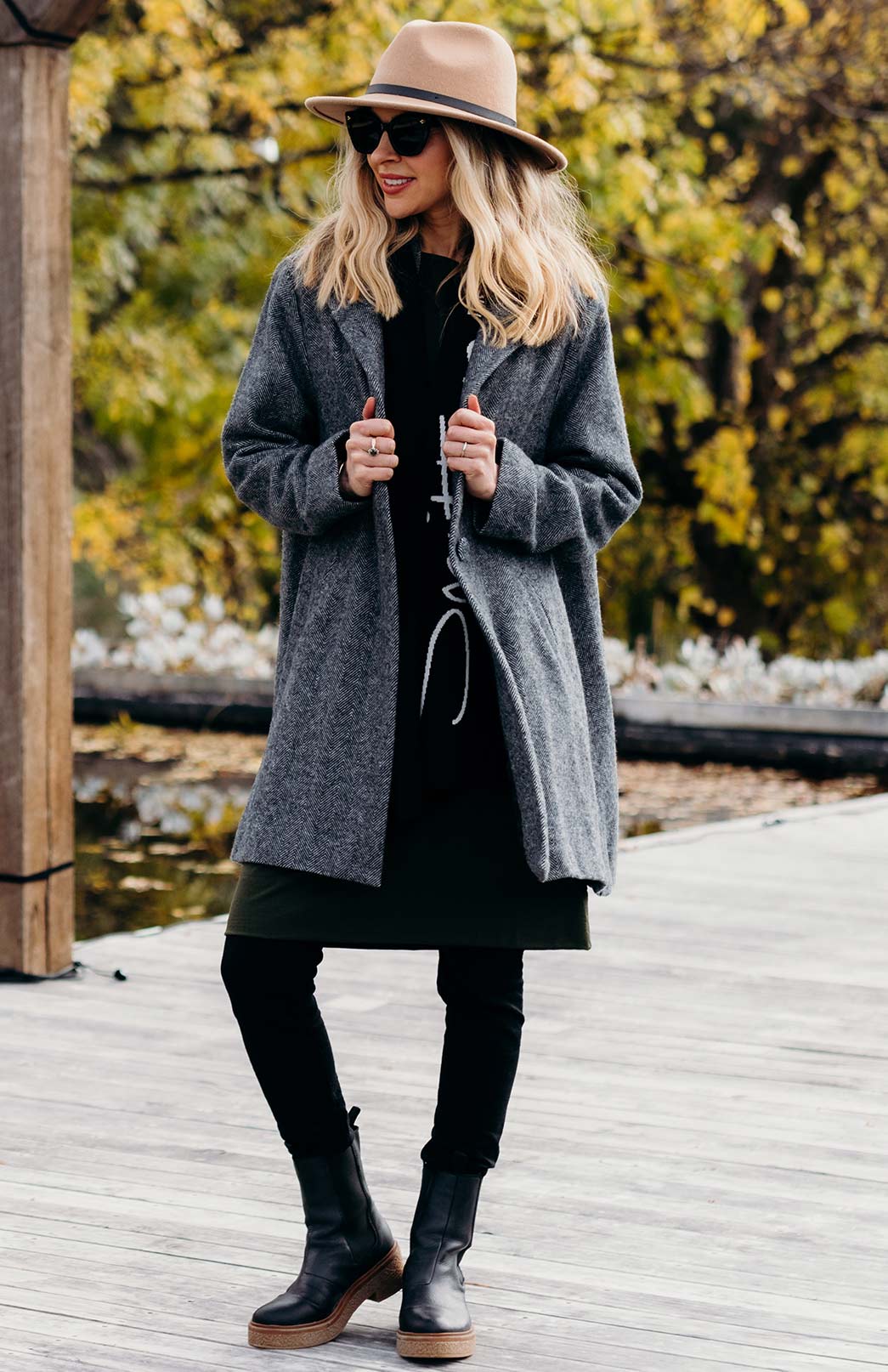 Constructed right here in Tasmania, from Tasmanian made fabric (thank you Waverley Woollen Mills - made in Tasmania since 1874!), our bespoke Herringbone Long Coat is designed to match every outfit your heart could desire. The incredibly luscious pure merino wool outer layer keeps you snug and warm - whilst the pure silk lining helps this wool coat to glide over your layers beneath and will not stick or create static as so often happens with single layered coats! Â