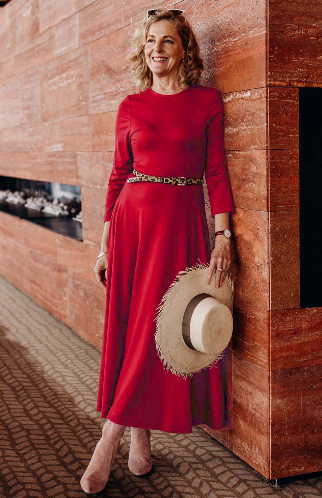 When attending a special event, elevate your look with heeled boots, wedges, or comfortable slingbacks or wear more casually with retro sneakers. For effortless glamour, accessorize with a belt, statement jewelry, or one of our luxurious scarves like the Patterned Wrap or Luxury Scarf.
